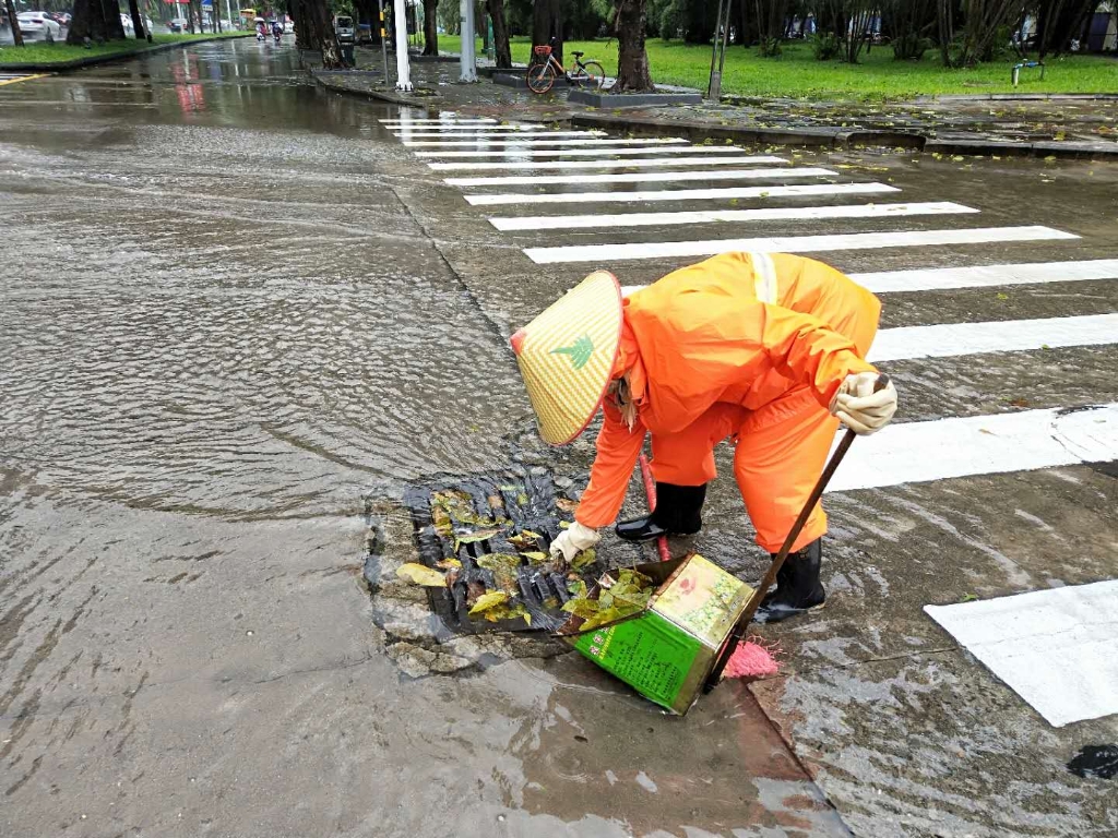 據悉,海口環衛在風雨來臨前已做了充分的準備和部署,已將垃圾提前清運、車輛加滿油、成立應急隊伍保障;在降雨過程中,他們整裝待發,發現問題立即投入到第一線;沒到雨停的間隙,道路清潔、垃圾清運工作立即展開,最大限度還城市以潔凈。
