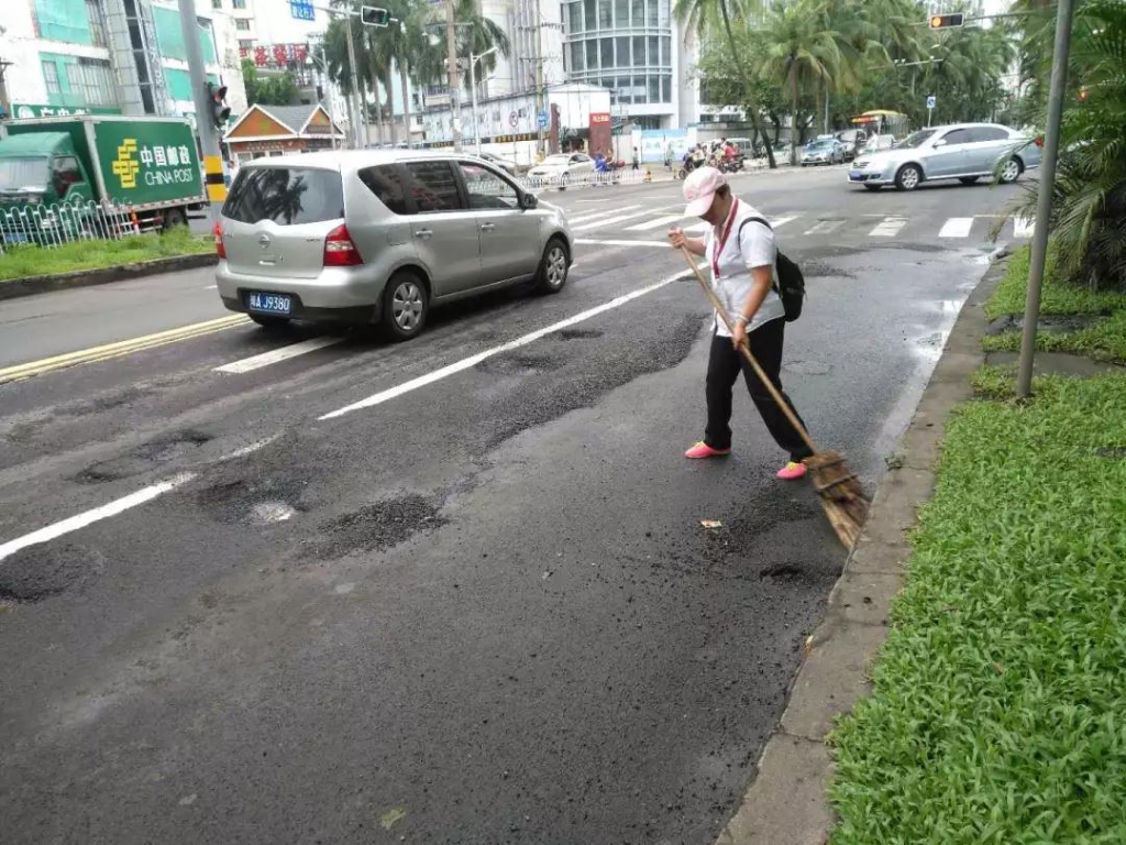 為何眾多市民沒(méi)有看到那一片狼藉的景象?能在雨后順利恢復(fù)生活不感到絲毫影響?因?yàn)橛幸蝗喝?,他們冒著風(fēng)雨,不辭辛苦維護(hù)了城市的整潔面貌,他們就是??诃h(huán)衛(wèi)工人。
