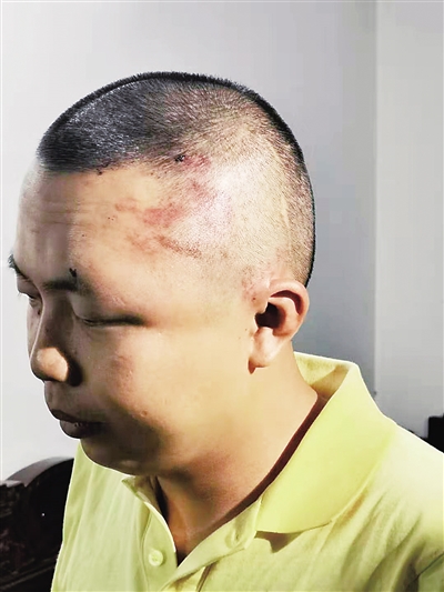 頭部挨了一拳后,鄭在理沒有還手,而是一邊后退,一邊撥打電話報警,但對方依舊不依不饒一路追打。此時,打人者還有兩名同伙從附近沖了上來,圍著鄭在理一頓拳打腳踢,甚至,他們當中有的人還掄起電動車鎖頭狂擊鄭在理的頭部,直到將鄭在理打倒在地,這伙人才揚長而去。
