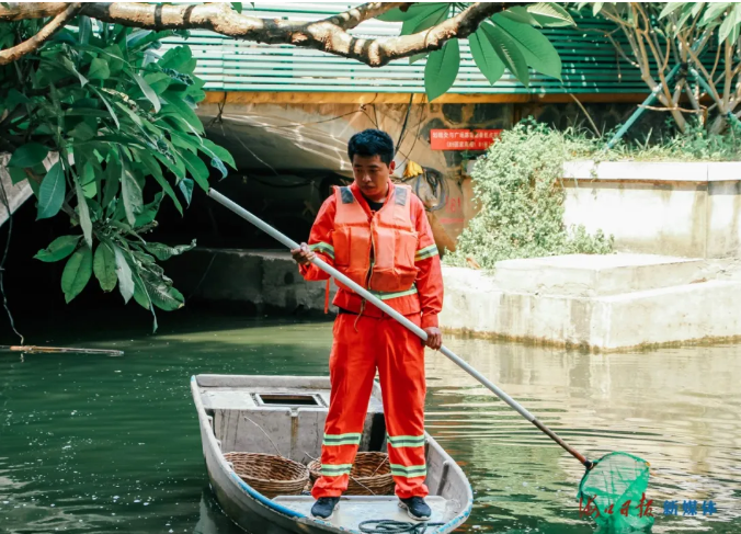 說(shuō)起水上環(huán)衛(wèi)工人,在外人看來(lái),他們每天劃著船在水面上游來(lái)蕩去,頗有漁夫悠然自得的愜意。但實(shí)際上,水域打撈工作沒(méi)有那么簡(jiǎn)單,不僅要會(huì)游泳,還要臂力足夠大、平衡感要好,要能堅(jiān)持長(zhǎng)時(shí)間使用竹竿在水中打撈垃圾。