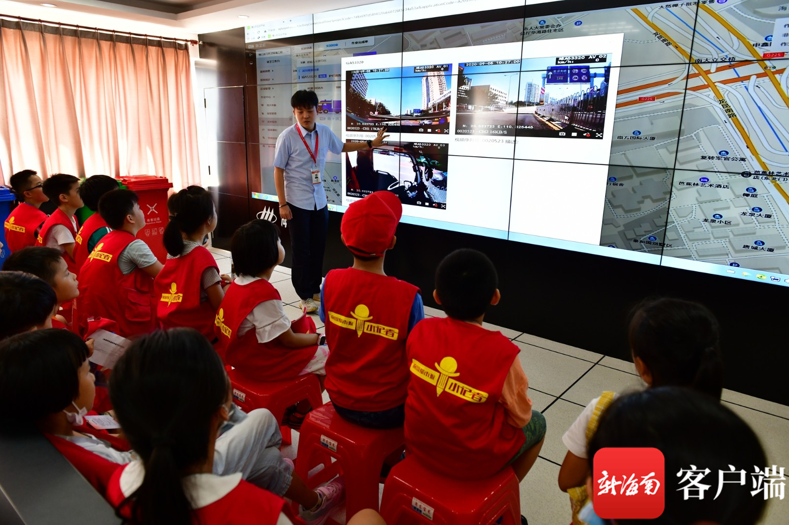在現場體驗了如何分類可回收垃圾并投放掙錢、了解了各類環衛車神器如何作業和清運垃圾后,小記者們又來到了位于海口保稅區內的龍馬環衛公司監控指揮中心。在這里,小記者們觀看到監控指揮中心大屏幕上實時展現了片區內各類環衛車和各個轉運站等情況,通過屏幕看到垃圾清運、轉運等過程。