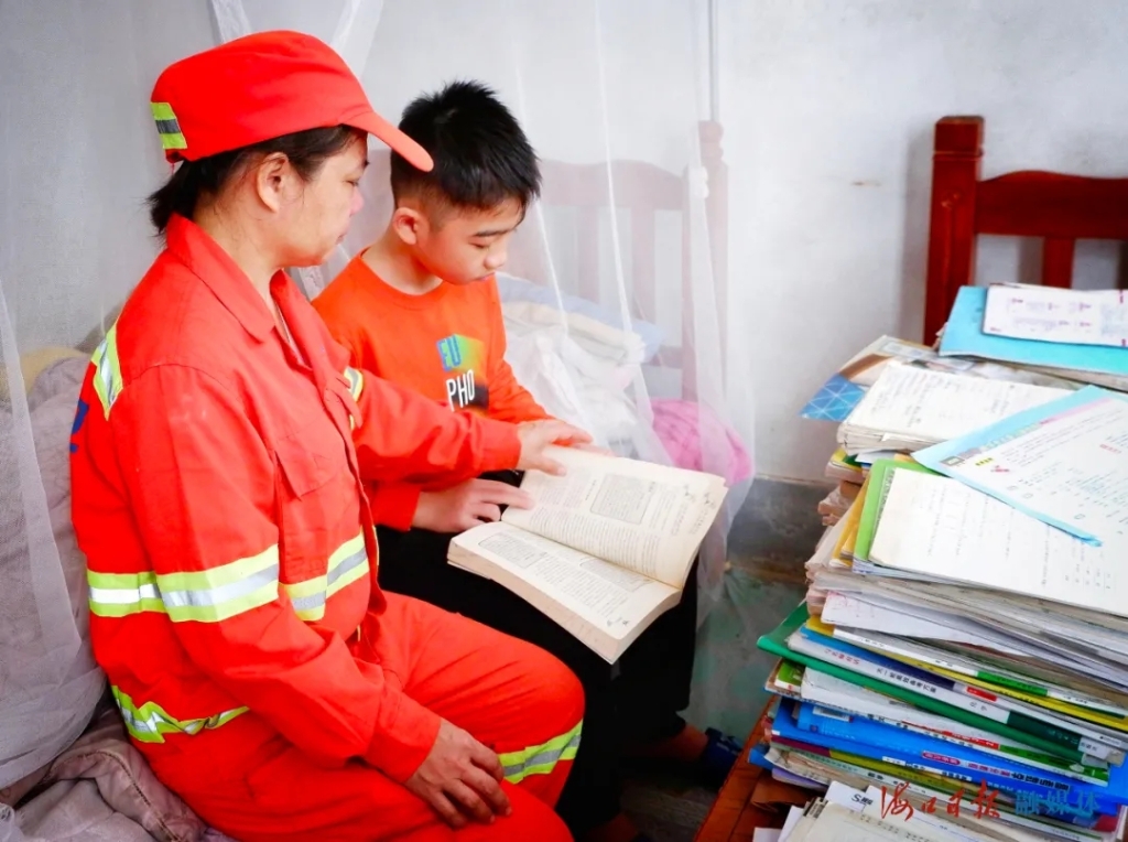 黎文強(qiáng)在輔導(dǎo)孩子做作業(yè)。