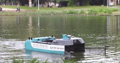 據介紹,這艘無人清潔船藍白相間,長2.5米,寬1.5米,船頭有兩張張開的網,就像展開的手臂,將河道垃圾納入懷中。船體中間則是一個鐵板鉤,就像一個空空的肚子,用來盛放垃圾。運載量達到50公斤,可以打撈樹葉、水草、垃圾袋、礦泉水瓶等各類垃圾。保潔員只需要定時清理船內收集的垃圾就可以了,比起人工打撈更加安全。船上配備有定位系統、導航平臺和探測設備。在航行過程中,無人清潔船一邊通過聲吶、激光和雷達等技術探測障礙物,一邊實時計算出避障路線,并選擇最佳巡航線路。在到達目標點后,無人清潔船可以停下來執行不同的任務。平臺還具備實時數據和視頻通訊功能,能將數據及時發送回岸上。這樣,岸上的工作人員可以通過人機交互終端,查看船只航行路線、任務執行狀態和檢測參數分布圖等。