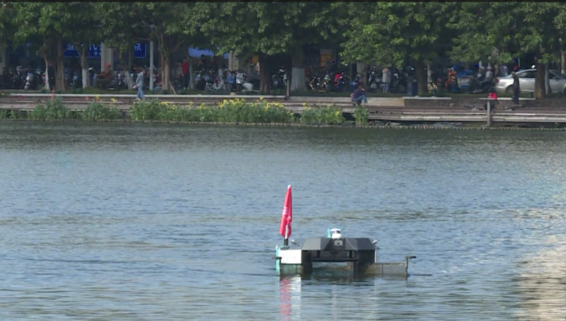 海口市人民公園東西湖水域內(nèi),一艘藍白相間的無人小船在湖中緩緩滑行,船頭張開的兩張大網(wǎng),猶如兩條手臂將湖面垃圾“抱”進船身。這就是海口龍馬環(huán)衛(wèi)于去年新投入使用的無人駕駛清潔船,該船能在極少人力監(jiān)管下,實現(xiàn)90%以上的水面自動清理,工作效率是原來人工的20倍左右。