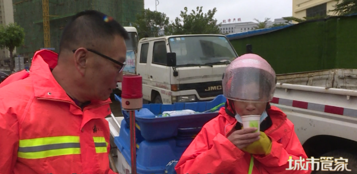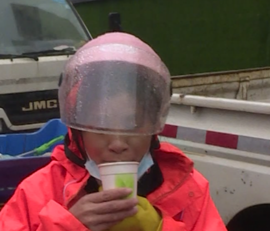 環(huán)衛(wèi)工人:喝一口姜茶,身體暖了不少。
