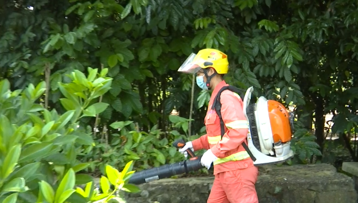 村里有不少枝繁葉茂的叢林地帶,僅依靠常規的環衛設備很難保證衛生清潔,而環衛工人杜美燕身上背著的這臺吹風機就能精準解決痛點。通過強勁的風力將枝葉縫隙里的垃圾吹出來,不僅提高了作業效率,更提升了凈化能力。