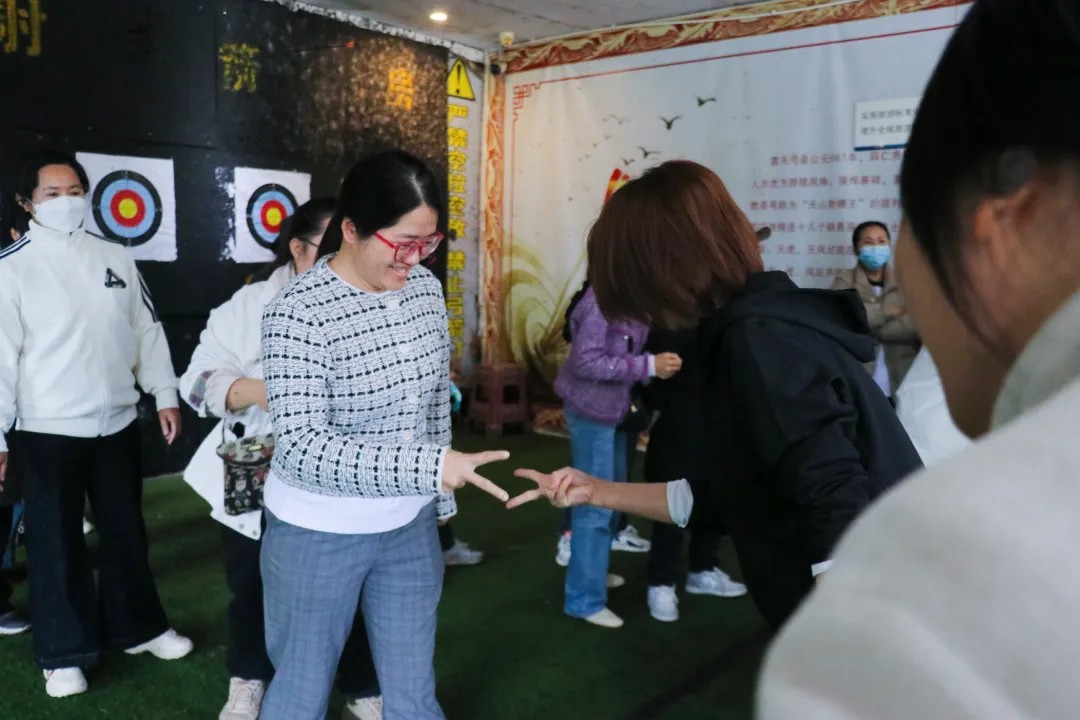 隨著活動的開場,緊張又刺激的拓展環節正式拉開帷幕。“一傳到底”考驗團隊的默契配合,大家手搭肩膀,齊心協力將球傳遞到最后;“原地踏步走”挑戰個人的平衡感和方向感,蒙上雙眼,在方寸之間尋找平衡;“猜拳過河”更是將活動推向高潮,隊長們化身“先鋒”,與對手斗智斗勇,隊員們吶喊助威,現場氣氛熱烈非凡。現場加油聲、歡呼聲此起彼伏,氣氛熱烈到了極點。