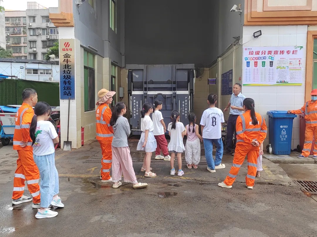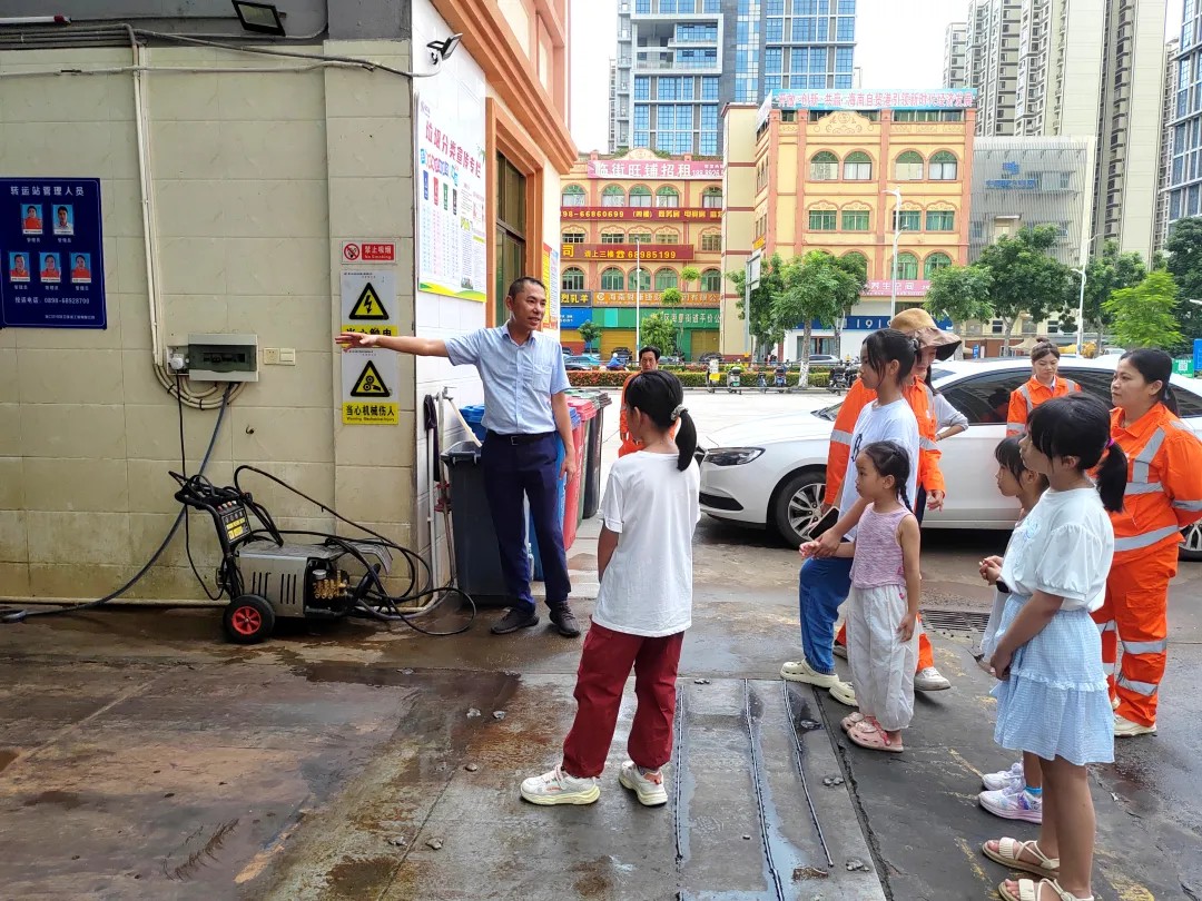 在安康安全專題教學環節,孩子們參觀了轉運站、公廁等作業場景,直觀了解到環衛作業全流程,涵蓋道路清掃、垃圾收集、運輸、處理等環節。公司安全委員會辦公室主任韓嵩重點講解了父母日常工作中使用的清掃車、灑水車、垃圾轉運車等工具和車輛,加深了孩子們對父母工作內容的認知。同時,結合環衛工作特點,工作人員普及了父母作業時可能遇到的安全風險及防護措施,還講解了日常生活中的交通安全、消防安全、用電安全等知識,進一步提升了孩子們的安全意識。