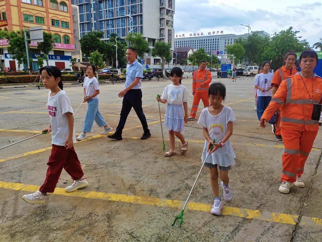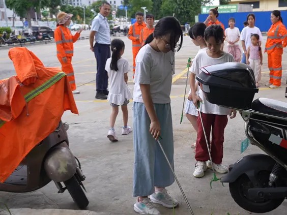 隨后,路面安全撿垃圾體驗活動拉開帷幕。工作人員先強調實踐中的安全注意事項,并為孩子們分發手套、垃圾袋、垃圾夾等工具。在工作人員和家長的陪同下,孩子們在周邊指定安全路面區域體驗撿垃圾工作。實踐中,工作人員引導孩子們觀察不同類型垃圾,再次強調垃圾分類重要性,讓他們在勞動中體會父母在陽光下、風雨中工作的辛勞。