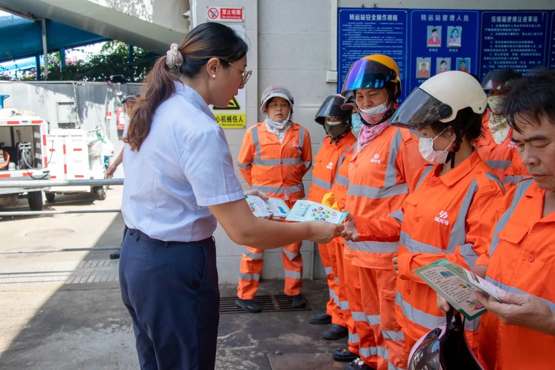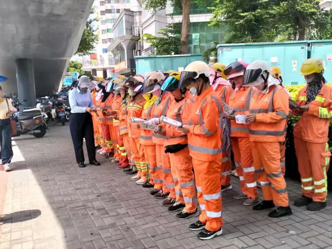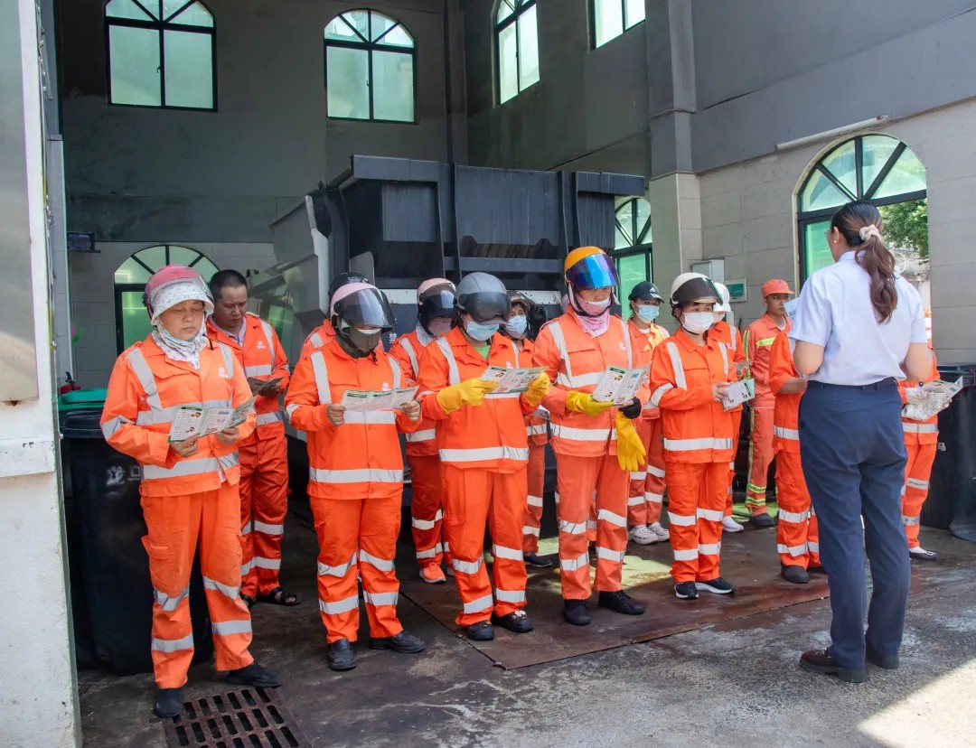 考慮到環衛工人工作時間分散的特點,培訓活動利用上下班交接和例會的碎片化時間開展。在各片區,管理人員化身 “講師”,結合實際講解蚊媒傳染病的防控重點。 公司向每一位環衛工人發放圖文并茂的手冊,手冊中不僅詳細介紹了基孔肯雅熱、登革熱的傳播途徑、典型癥狀和危害,還以通俗易懂的語言講解了蚊蟲孳生地清理、個人防護措施等實用技巧,例如 “翻盆倒罐清積水”“出門穿長袖衣褲”“正確使用驅蚊劑” 等,讓大家能快速掌握核心要點。