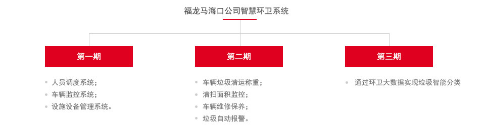 福龍馬海口公司智慧環(huán)衛(wèi)系統(tǒng)在環(huán)衛(wèi)市場化的新形勢下依托母公司高端的環(huán)衛(wèi)裝備和智慧環(huán)衛(wèi)軟件研發(fā)的優(yōu)勢孕育而生。目前這套系統(tǒng)是專門針對海口地區(qū)環(huán)衛(wèi)環(huán)境市場最新定制的智能系統(tǒng)。系統(tǒng)總體涵蓋五個板塊,分三期完成。目前已經實現了第一期功能:人員調度系統(tǒng),車輛監(jiān)控系統(tǒng),設施設備管理系統(tǒng)。隨著二期的發(fā)展,將實現車輛垃圾清運稱重,清掃面積監(jiān)控,車輛維修保養(yǎng),垃圾自動報警。三期將通過環(huán)衛(wèi)大數據實現垃圾智能分類。